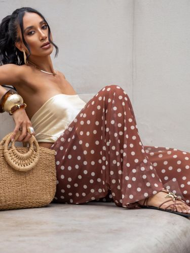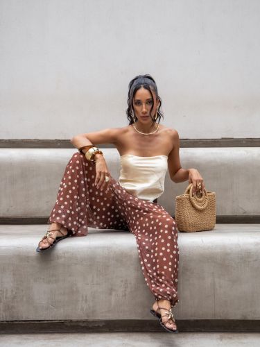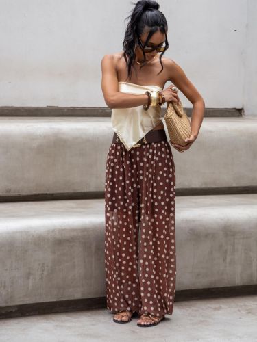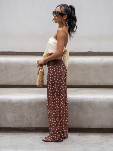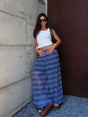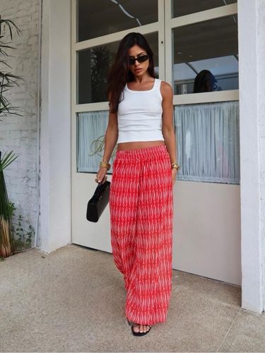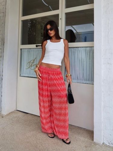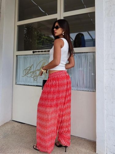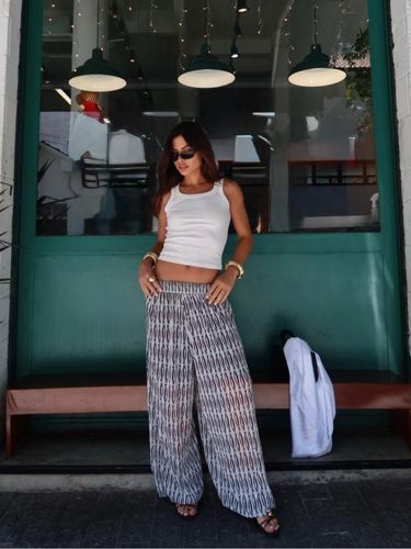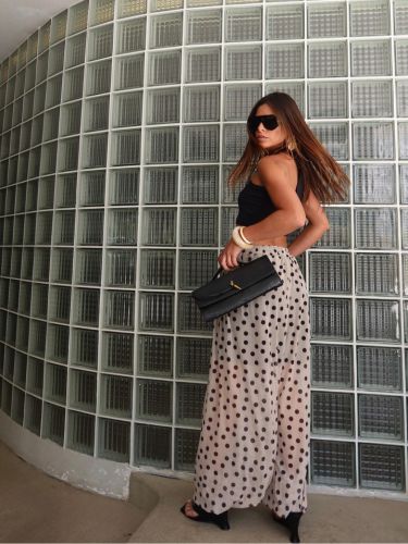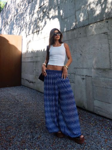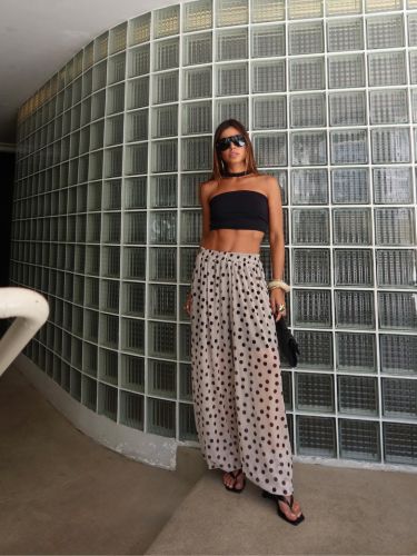 Com cintura alta e elástica, se adapta bem ao corpo, valorizando a silhueta sem apertar. É uma peça versátil, que transita facilmente entre produções casuais e sofisticadas — perfeita para usar com rasteiras, saltos ou sandálias finas.