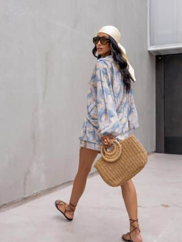 O tecido é leve, com toque macio e excelente respirabilidade, ideal para dias quentes, viagens, beach clubs, passeios urbanos e produções resort.