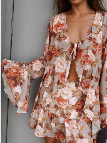 Delicado e cheio de movimento, o conjunto de saia e bata é a escolha perfeita para quem busca um visual feminino, leve e sofisticado. A bata possui modelagem solta com mangas amplas que trazem fluidez ao look, além de um decote com amarração que adiciona charme e permite ajuste ao corpo.