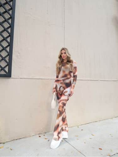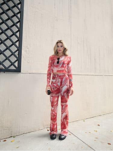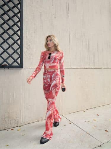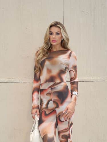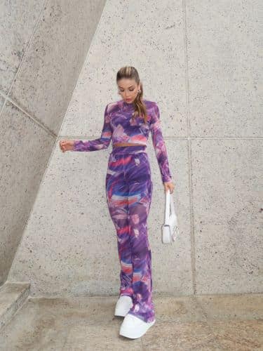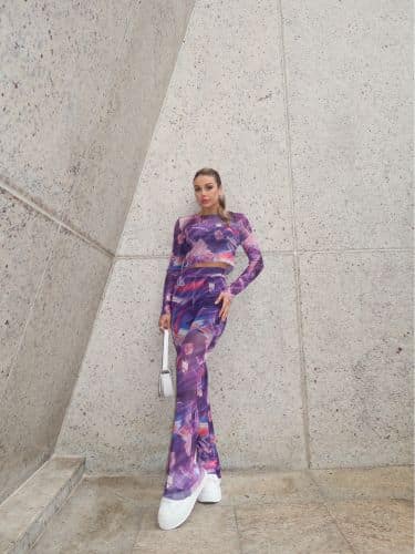 Esse conjunto de tule é a expressão máxima de sofisticação. O cropped de manga longa oferece um toque de glamour, enquanto a calça complementa o visual com graça e fluidez. A transparência sutil do tule adiciona um elemento sensual, tornando este conjunto perfeito para ocasiões especiais onde o estilo encontra a modernidade.