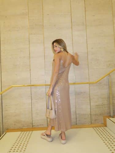 Este deslumbrante vestido de paetês é a escolha perfeita para quem busca brilho e elegância. Com alças delicadas, proporciona um toque sofisticado, enquanto o forro garante conforto. Ideal para eventos especiais onde o glamour é essencial, esse vestido certamente atrairá olhares com seu brilho sutil.