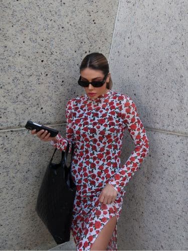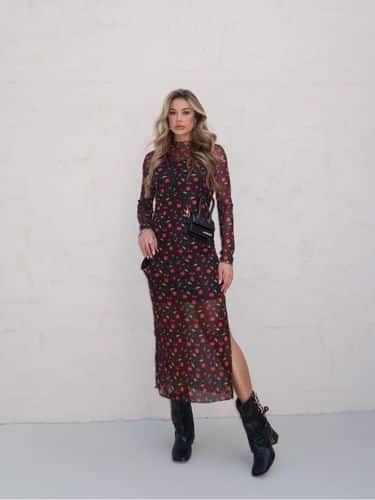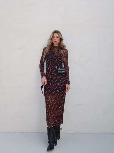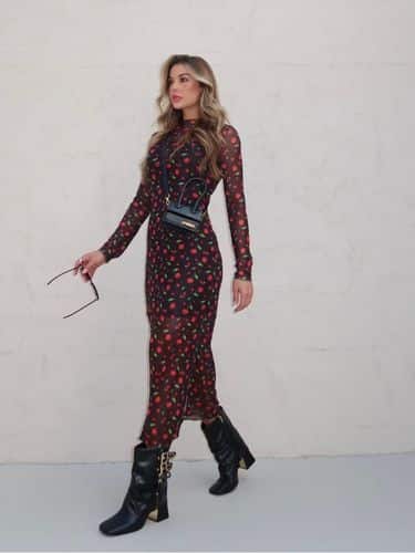 Este vestido de tule é midi, tem um estampado encantador e apresenta uma fenda. É uma peça elegante que combina comprimento médio com um toque de sensualidade, graças à fenda lateral. A estampa traz um toque de estilo e cor, tornando-o perfeito para diversas ocasiões. É uma escolha charmosa e versátil para o seu guarda-roupa.
