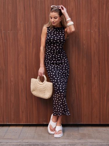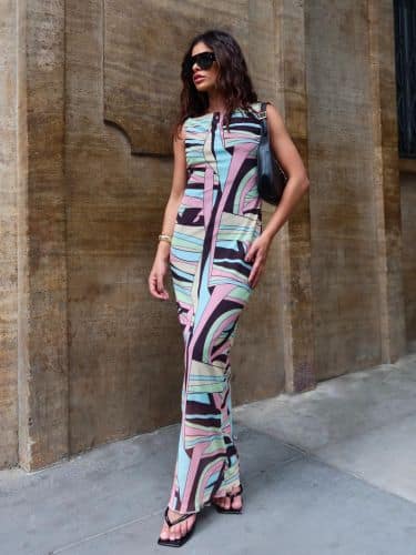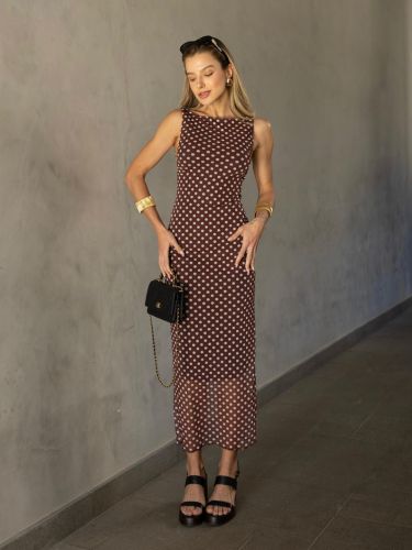 Um vestido regata, midi, confeccionado em tule, é uma peça elegante e delicada. O tecido em tule proporciona um visual leve e fluido, enquanto o forro garante conforto e opacidade. A estampa exclusiva confere um toque de sofisticação e originalidade à peça, tornando-a única. O comprimento midi oferece um equilíbrio perfeito entre elegância e descontração, ideal para diversas ocasiões. Com seu corte regata, o vestido valoriza os ombros e adiciona um ar moderno ao visual.