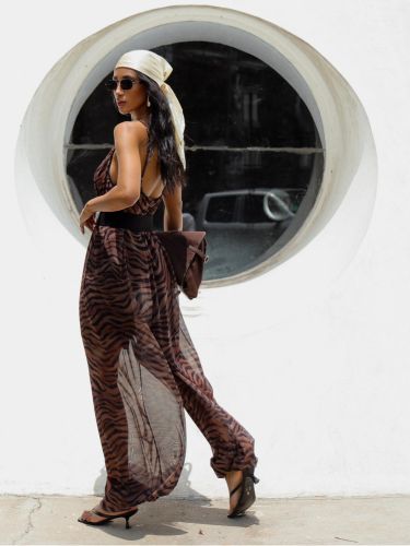 Sua calça segue o clássico modelo Aladim, com volume amplo, caimento esvoaçante e efeito etéreo que acompanha o movimento do corpo. O resultado é uma peça moderna, versátil e perfeita para composições que vão do casual chic ao sofisticado com apenas a troca dos acessórios.