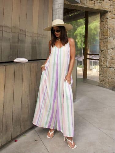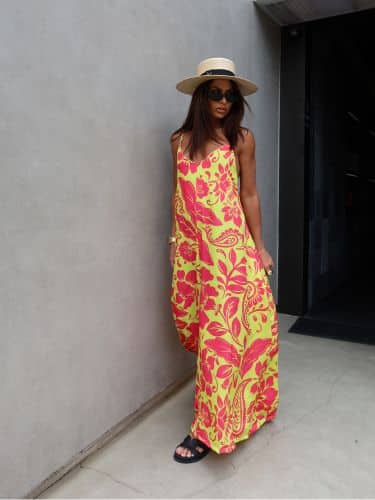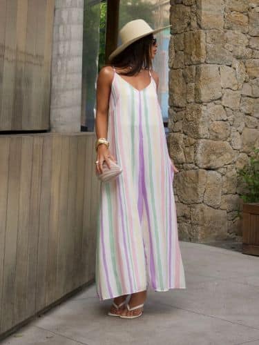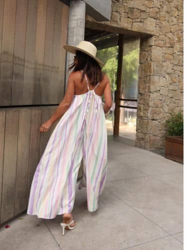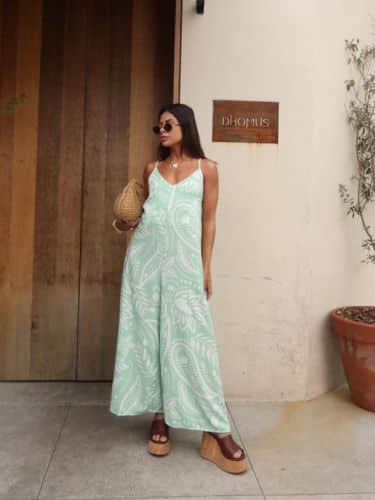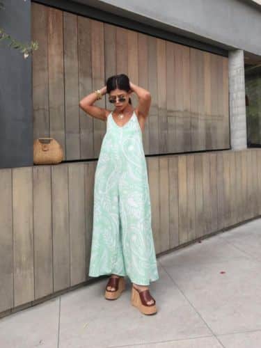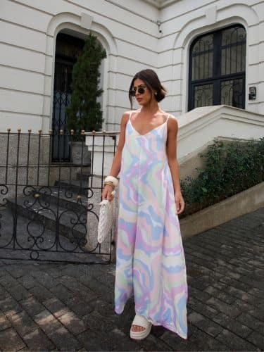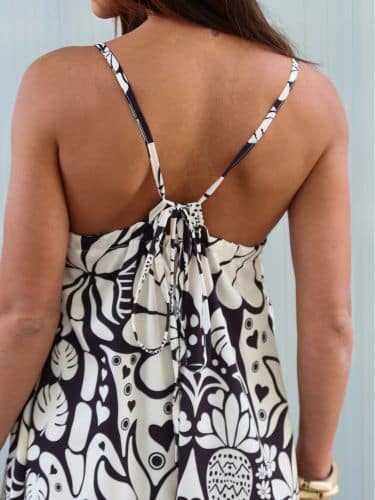 Um macacão de alça com amarração nas costas é uma peça de roupa elegante e confortável, ideal para dias mais quentes. Ele apresenta alças finas e delicadas, que proporcionam leveza ao visual. A amarração nas costas traz um toque especial, criando um detalhe ajustável que valoriza a silhueta. Este macacão se destaca por suas estampas exclusivas, cuidadosamente desenhadas para trazer originalidade e sofisticação à peça, tornando-a única e cheia de personalidade.