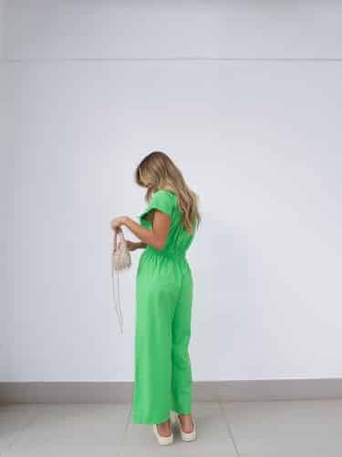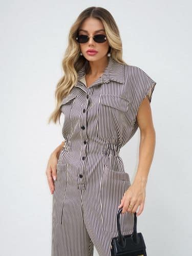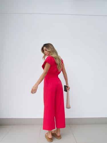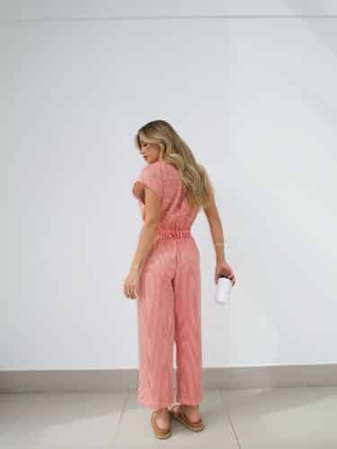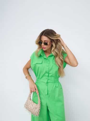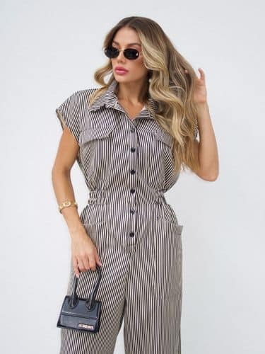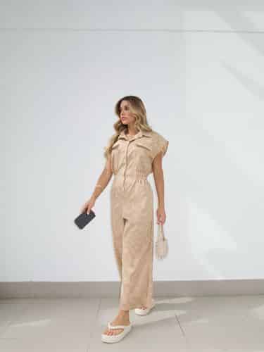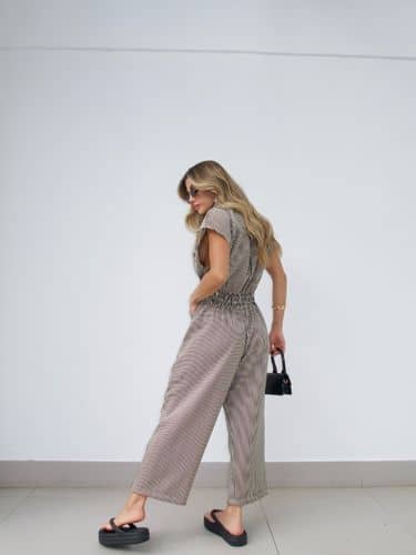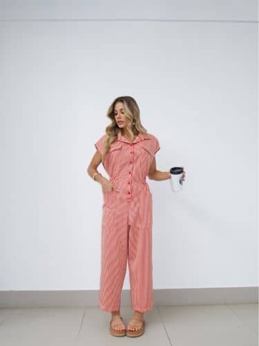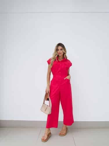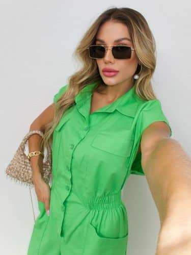 Este macacão, com mangas curtas, é a definição de casualidade confortável. Seu franzimento elástico na cintura proporciona um ajuste elegante, destacando a silhueta de forma sutil. Os botões adicionam um toque prático e moderno, tornando-o uma escolha versátil para diversas ocasiões, combinando estilo e conforto em uma única peça.